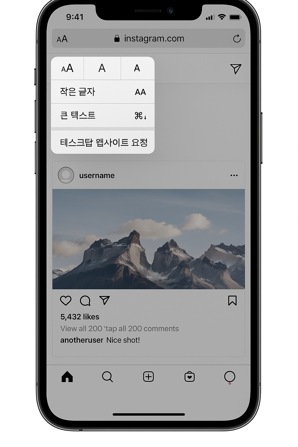 - iPhone (Safari): 주소창의 aA 아이콘 → 데스크탑 웹사이트 요청